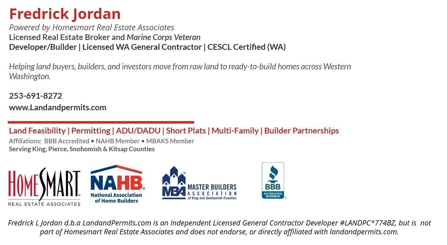 Serving King, Pierce, Kitsap, and the City of Tacoma. We help you move forward—whether you’re buying land, building a home, or developing property.